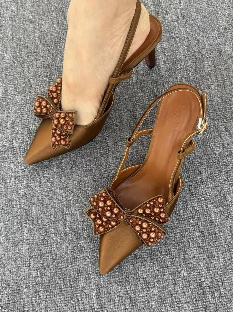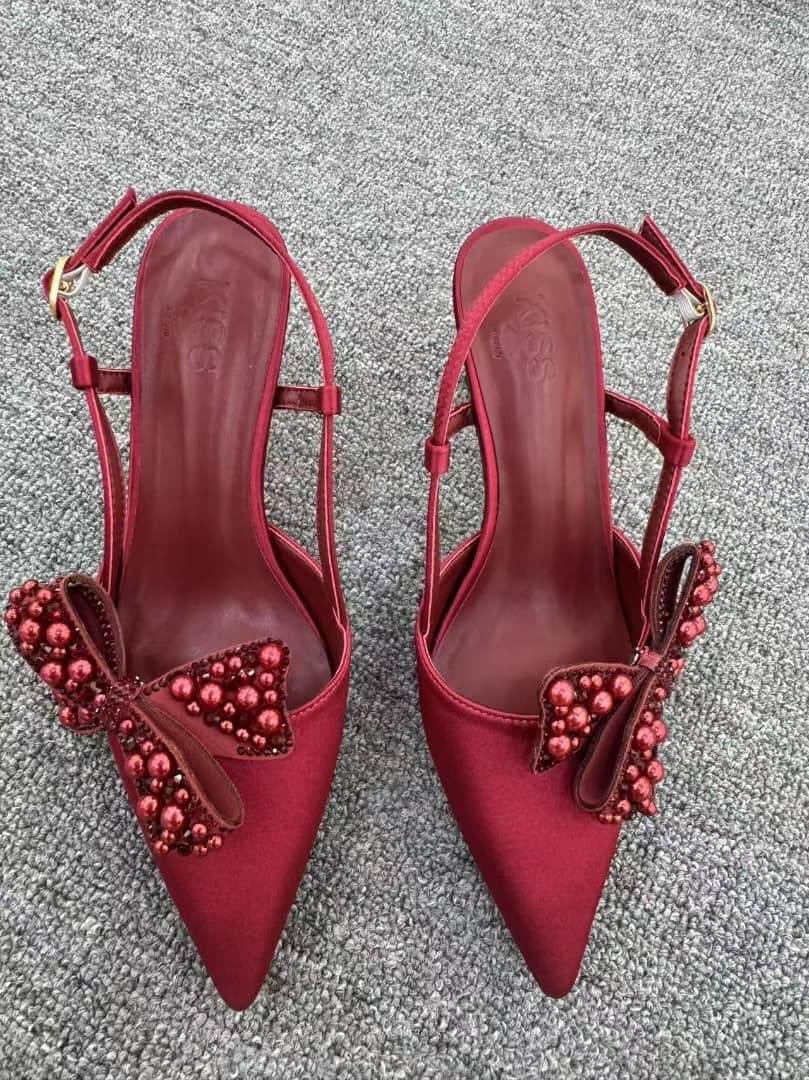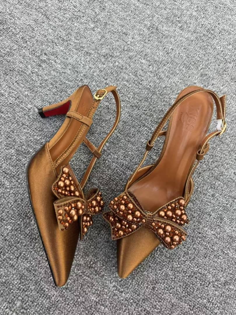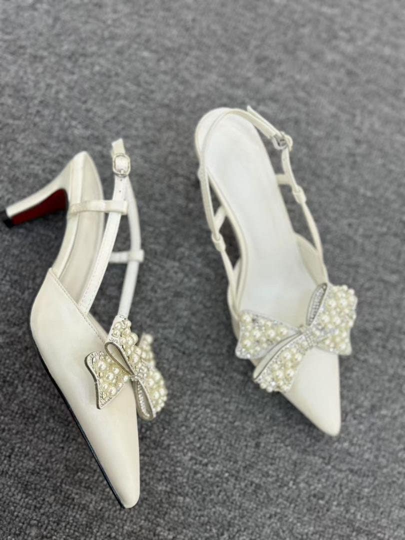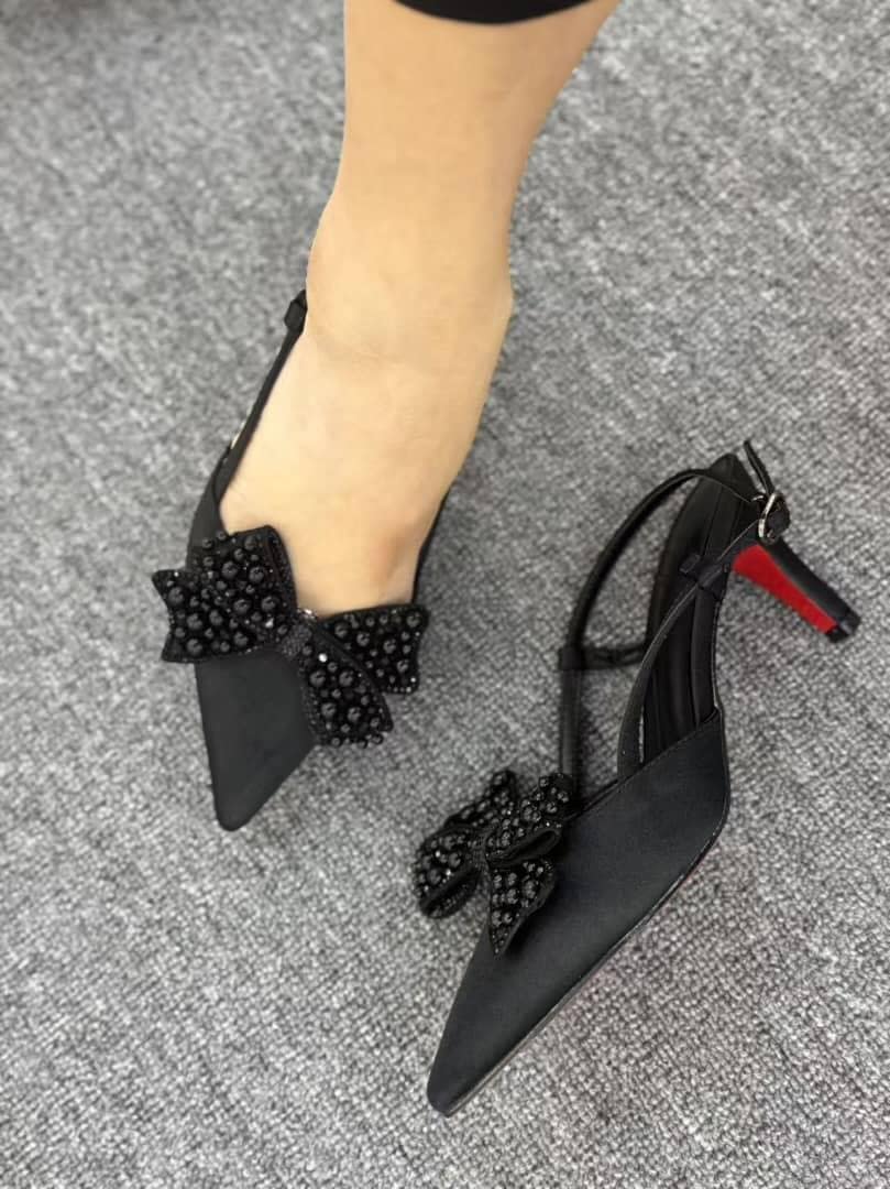 Kiss Detachable Bow Tie Half Covered Shoes for a Romantic Touch. Luxury fashion, women’s shoes, bow tie shoes, romantic, stylish, customizable, special occasions.