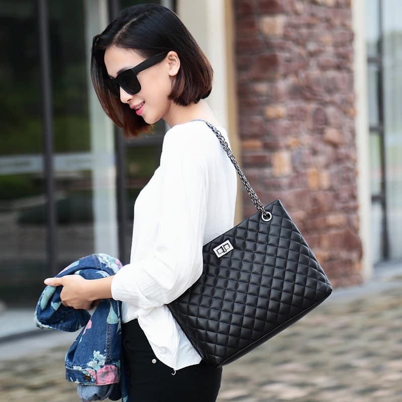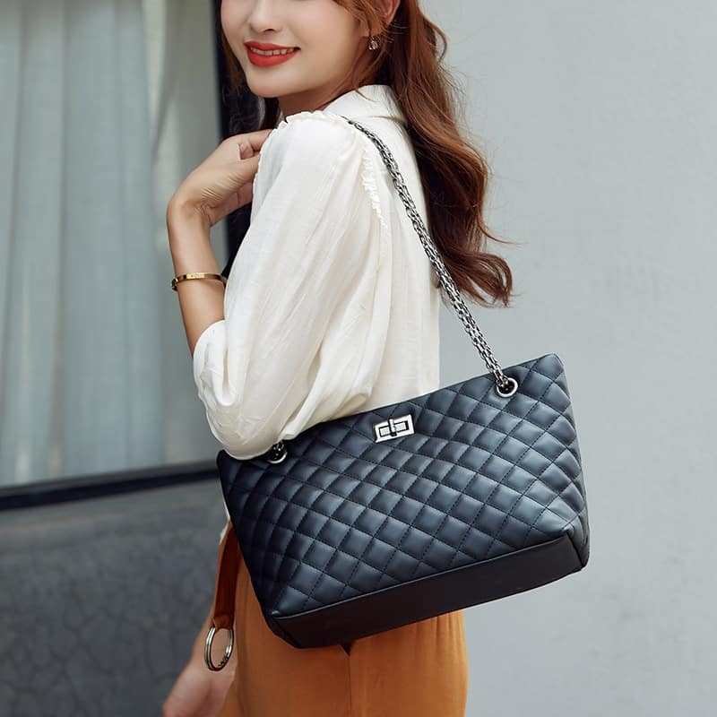 Luxury Women’s Soft Shinny Leather Tote Bag With Chain Hand