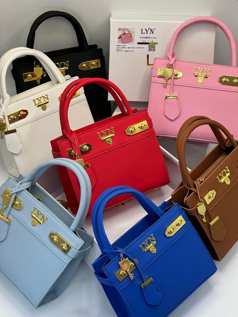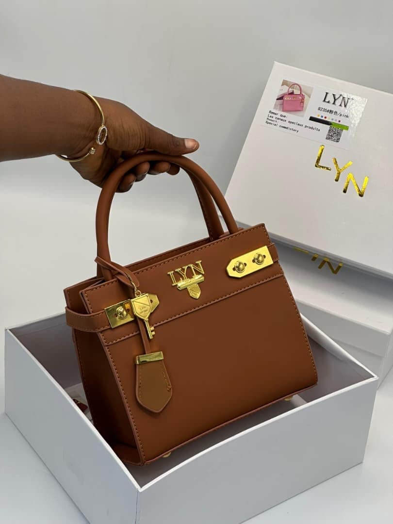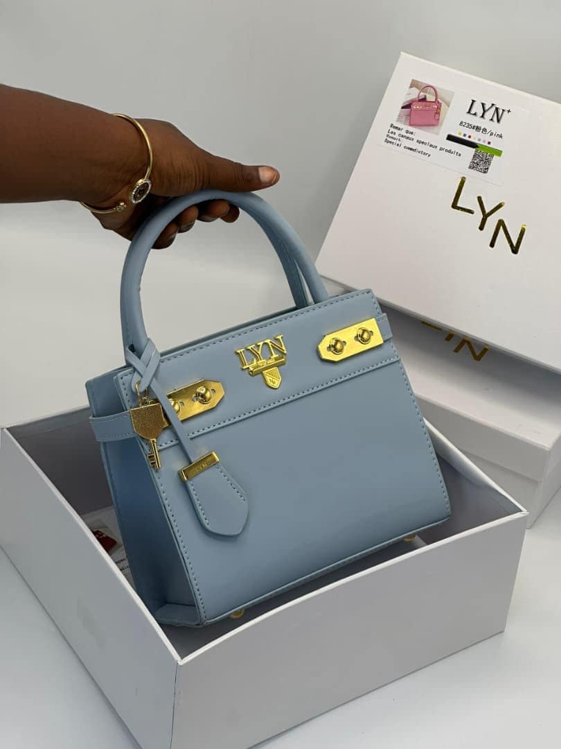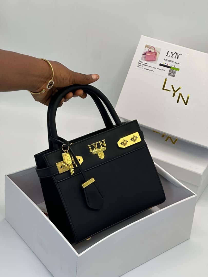 Crafted from premium, high-durability vegan leather, this bag features a smooth matte finish that resists wear while maintaining a luxurious feel. The front is adorned with the iconic gold-tone LYN hardware and a decorative lock-and-key charm, adding a touch of vintage-inspired glamour to a contemporary design.