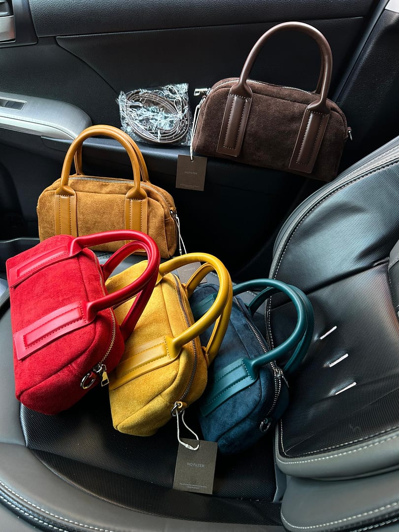 The “No Filter” Suede Mini Boston Bag is the ideal choice for those who value understated elegance over loud branding. Its compact size makes it incredibly versatile—small enough for evening use but structured enough to hold all your daily essentials like a phone, wallet, and keys. Choosing this bag means investing in a unique textural piece that adds a layer of “quiet luxury” to any outfit, from casual denim to sophisticated trench coats.
