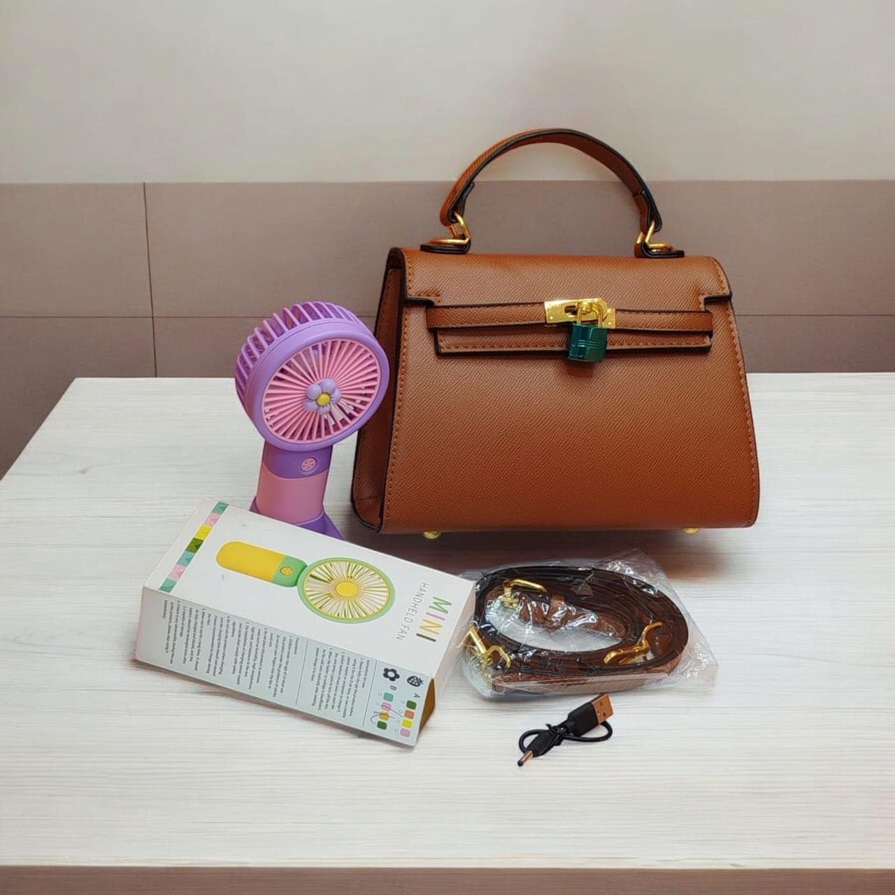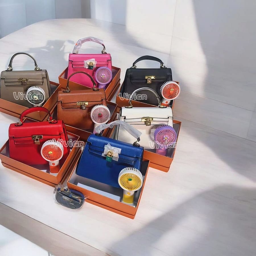 Luxury Hermes Leather Bag for Women, with mini fan – Exquisite Elegance from Jessiado’s Empire