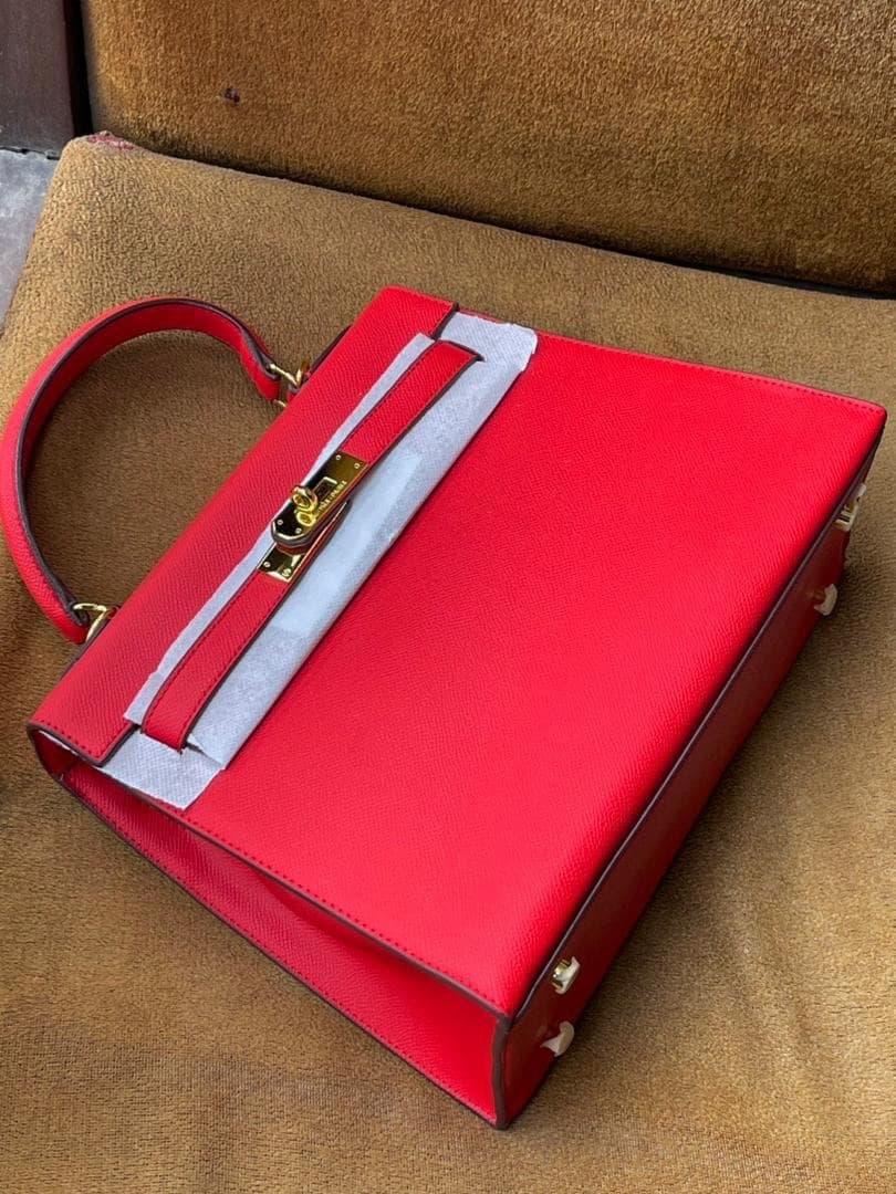 Achieve the pinnacle of refined elegance with our Heritage Kelly-style Top-Handle Bag. This piece is a masterclass in architectural design, tailored for those who appreciate sharp lines and a structured, formal silhouette. Crafted from premium Epsom-style grained leather, this bag is celebrated for its incredible rigidity, scratch resistance, and lightweight feel. The unique pressed grain gives the leather a subtle sheen and ensures that the bag maintains its crisp shape over time.