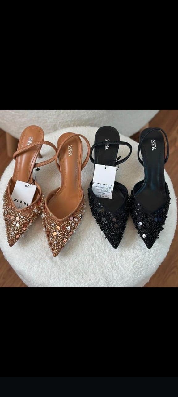 The true artistry lies in the hand-finished embellishments. The toe box is encrusted with a rich tapestry of shimmering beads and high-shine sequins that catch the light from every angle, creating a multi-dimensional sparkle. Available in a classic Midnight Black for a sultry, monochromatic look, or a warm Nude-Tan that blends seamlessly with the skin while providing a brilliant metallic pop, these heels are essential for your evening wardrobe. Whether you’re attending a black-tie gala, a romantic wedding, or an upscale dinner party, these Zara pumps ensure you walk with confidence and unrivaled style.