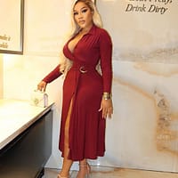 Women’s Luxury Wine Color Gown with Front Slit – High-End, Chic, and Elegant Evening Wear for Red Carpet Events, Weddings, and Galas